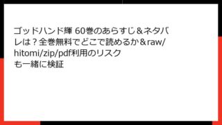 ゴッドハンド輝 ゴッドハンド輝 60巻のあらすじ&ネタバレは?全巻無料でどこで読めるか&raw/hitomi/zip/pdf利用のリスクも一緒に検証 ゴッドハンド輝 60巻 詳細あらすじ:命の絆と究極の試練巻の全体像:新たなステージへの挑戦『ゴッドハンド輝』60巻は、主人公・真東輝が聖明大学附属病院を離れ、国際的な医療支援活動に身を投じる転換期を描いた一冊です。前巻までの国内でのドラマチ... 2025.11.17 ゴッドハンド輝少年マンガ・コミック
