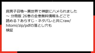 腐男子召喚~異世界で神獣にハメられました~ 分冊版 26巻のあらすじ詳解こんにちは、BL漫画ファン必見のブログへようこそ! 今日は人気の異世界BL作品『腐男子召喚~異世界で神獣にハメられました~』の分冊版26巻について、詳しくあらすじを掘り...