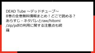 DEAD Tube ~デッドチューブ~ DEAD Tube ~デッドチューブ~ 8巻の全巻無料情報まとめ!どこで読める?あらすじ・ネタバレとraw/hitomi/zip/pdfの利用に関する注意点も網羅 DEAD Tube ~デッドチューブ~ 8巻:過激な殺戮ゲームの新章、深まる闇の渦中こんにちは、漫画好きの皆さん! 今日は、北河トウタ先生の作画と山口ミコト先生の原作による衝撃のサスペンス・ホラー作品、『DEAD Tube ~デッドチューブ... 2025.11.17 DEAD Tube ~デッドチューブ~青年マンガ・コミック