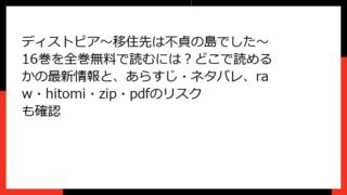 ディストピア~移住先は不貞の島でした~ ディストピア~移住先は不貞の島でした~ 16巻を全巻無料で読むには?どこで読めるかの最新情報と、あらすじ・ネタバレ、raw・hitomi・zip・pdfのリスクも確認 ディストピア~移住先は不貞の島でした~ 16巻 詳細あらすじ大人気ホラーサスペンス漫画『ディストピア~移住先は不貞の島でした~』の16巻がついに登場! 累計ダウンロード数70万を超えるこの作品は、子孫繁栄を至上命題とする狂気の離島「根度羅島... 2025.11.18 ディストピア~移住先は不貞の島でした~青年マンガ・コミック