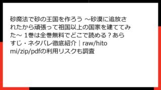 砂魔法で砂の王国を作ろう ~砂漠に追放されたから頑張って祖国以上の国家を建ててみた~ 砂魔法で砂の王国を作ろう ~砂漠に追放されたから頑張って祖国以上の国家を建ててみた~ 1巻は全巻無料でどこで読める?あらすじ・ネタバレ徹底紹介|raw/hitomi/zip/pdfの利用リスクも調査