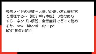 少女マンガ・コミック 後宮メイドの災難~人使いの荒い宮廷書記官と推理する~【電子単行本版】 3巻のあらすじ・ネタバレ解説!全巻無料でどこで読めるか、raw・hitomi・zip・pdfの注意点も紹介 後宮メイドの災難~人使いの荒い宮廷書記官と推理する~ 3巻 詳細あらすじドラコニア王国王城を舞台に、転生メイドの推理劇がさらに深みを増す第3巻。宝石盗難事件を無事解決したアリスが、次なる難事件に巻き込まれていく様子がスリリングに描かれます。... 2025.11.20 少女マンガ・コミック後宮メイドの災難~人使いの荒い宮廷書記官と推理する~【電子単行本版】