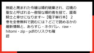 女性マンガ・コミック 無能と蔑まれた令嬢は婚約破棄され、辺境の聖女と呼ばれる~傲慢な婚約者を捨て、護衛騎士と幸せになります~【電子単行本】 3巻はどこで読める?全巻無料の方法・あらすじ・ネタバレとraw/hitomi/zip/pdfの違法性も比較調査