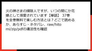 女性マンガ・コミック 火の神さまの掃除人ですが、いつの間にか花嫁として溺愛されています【単話】 37巻を全巻無料で楽しむ方法とは?どこで読めるか、あらすじ・ネタバレ、raw/hitomi/zip/pdfの違法性も確認
