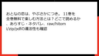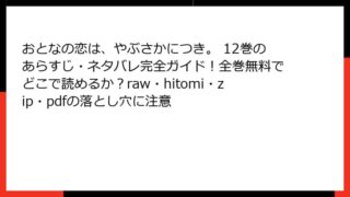 おとなの恋は、やぶさかにつき。 おとなの恋は、やぶさかにつき。 29巻はどこで読める?あらすじやネタバレ、全巻無料で読む方法も検証(rawやhitomi、zip/pdf利用のリスクも解説)