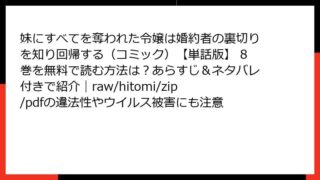 妹にすべてを奪われた令嬢は婚約者の裏切りを知り回帰する(コミック)【単話版】 妹にすべてを奪われた令嬢は婚約者の裏切りを知り回帰する(コミック)【単話版】 8巻を無料で読む方法は?あらすじ&ネタバレ付きで紹介|raw/hitomi/zip/pdfの違法性やウイルス被害にも注意