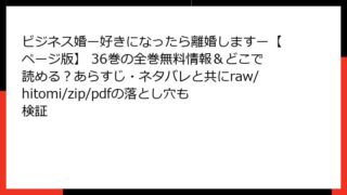 ビジネス婚ー好きになったら離婚しますー【ページ版】 ビジネス婚ー好きになったら離婚しますー【ページ版】 24巻を全巻無料で読むには?どこで読めるかの最新情報と、あらすじ・ネタバレ、raw・hitomi・zip・pdfのリスクも確認