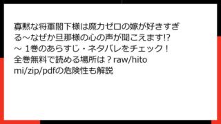 寡黙な将軍閣下様は魔力ゼロの嫁が好きすぎる~なぜか旦那様の心の声が聞こえます!?~ 寡黙な将軍閣下様は魔力ゼロの嫁が好きすぎる~なぜか旦那様の心の声が聞こえます!?~ 1巻のあらすじ・ネタバレをチェック!全巻無料で読める場所は?raw/hitomi/zip/pdfの危険性も解説