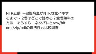 BLマンガ・コミック NTR公爵 ~傲慢令息がNTR敗北イキするまで~ 2巻はどこで読める?全巻無料の方法・あらすじ・ネタバレとraw/hitomi/zip/pdfの違法性も比較調査 NTR公爵 ~傲慢令息がNTR敗北イキするまで~ 2巻 詳細あらすじレビュー同人BL作品の傑作として話題の「NTR公爵 ~傲慢令息がNTR敗北イキするまで~」シリーズ。その2巻が登場し、1巻の導入から一気に深まるNTR(寝取られ)要素と快楽... 2025.11.24 BLマンガ・コミックNTR公爵 ~傲慢令息がNTR敗北イキするまで~