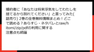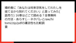 女性マンガ・コミック 婚約者に「あなたは将来浮気をしてわたしを捨てるから別れてください」と言ってみた(話売り) 16巻はどこで読める?全巻無料の方法・あらすじ・ネタバレとraw/hitomi/zip/pdfの違法性も比較調査