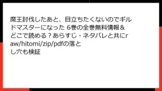 少年マンガ・コミック 魔王討伐したあと、目立ちたくないのでギルドマスターになった 6巻の全巻無料情報&どこで読める?あらすじ・ネタバレと共にraw/hitomi/zip/pdfの落とし穴も検証 帰還した結界術の天才【タテヨミ】 7巻長きにわたり王国を守ってきた結界術師の物語が、勇者の勝利とともに新たな展開を迎える。ブレイクが支え続けた結界の行方と、魔王討伐後の世界が描かれる。物語の背景魔王の軍勢から王国を守る結界が張り巡らされて3... 2025.11.24 少年マンガ・コミック魔王討伐したあと、目立ちたくないのでギルドマスターになった