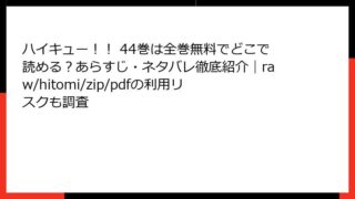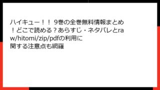 ハイキュー!! ハイキュー!! 6巻の魅力をあらすじ&ネタバレで紹介!全巻無料で読めるサイトやraw・hitomi・zip・pdfの危険性も検証