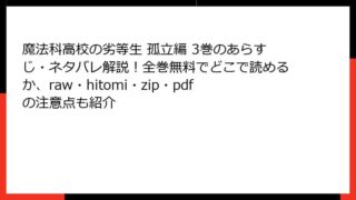 少年マンガ・コミック 魔法科高校の劣等生 孤立編 3巻のあらすじ・ネタバレ解説!全巻無料でどこで読めるか、raw・hitomi・zip・pdfの注意点も紹介