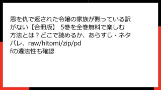 女性マンガ・コミック 恩を仇で返された令嬢の家族が黙っている訳がない【合冊版】 5巻を全巻無料で楽しむ方法とは?どこで読めるか、あらすじ・ネタバレ、raw/hitomi/zip/pdfの違法性も確認 comic Berry’sご懐妊!! 1巻のあらすじ物語の始まり:一夜の過ちから始まる予期せぬ妊娠広告代理店でグラフィックデザイナーとして働く佐波は、仕事のストレスを溜め込んでいたある日、プロジェクトの成功を祝う飲み会で上司の一色部長と一夜... 2025.11.26 女性マンガ・コミック恩を仇で返された令嬢の家族が黙っている訳がない【合冊版】