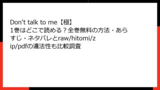 BLマンガ・コミック Don’t talk to me【極】 1巻はどこで読める?全巻無料の方法・あらすじ・ネタバレとraw/hitomi/zip/pdfの違法性も比較調査 Don't talk to me【極】 1巻 詳細あらすじレビュー:心の壁を溶かす甘酸っぱいBLストーリーこんにちは、漫画好きのブロガーです。今回は、ぞう工場さんによる人気BL作品「Don't talk to me【極】」の1巻を徹底レビュ... 2025.11.27 BLマンガ・コミックDon't talk to me【極】