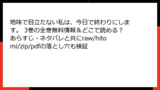 地味で目立たない私は、今日で終わりにします。 2巻 あらすじこの記事では、人気漫画「地味で目立たない私は、今日で終わりにします。」の2巻について、詳細なあらすじを紹介します。異世界転生要素を交えたファンタジー物語で、前巻からの続きがさらに魅...