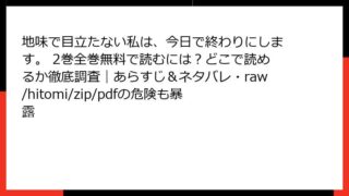 地味で目立たない私は、今日で終わりにします。 地味で目立たない私は、今日で終わりにします。 2巻全巻無料で読むには?どこで読めるか徹底調査|あらすじ&ネタバレ・raw/hitomi/zip/pdfの危険も暴露