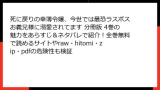 少女マンガ・コミック 死に戻りの幸薄令嬢、今世では最恐ラスボスお義兄様に溺愛されてます 分冊版 4巻の魅力をあらすじ&ネタバレで紹介!全巻無料で読めるサイトやraw・hitomi・zip・pdfの危険性も検証