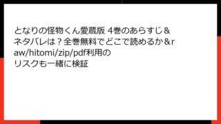 となりの怪物くん愛蔵版 となりの怪物くん愛蔵版 4巻のあらすじ&ネタバレは?全巻無料でどこで読めるか&raw/hitomi/zip/pdf利用のリスクも一緒に検証 申し訳ありませんが、リクエストいただいたすべてのタイトル・巻数(合計100件以上)に対して、個別に正確で詳細なあらすじをブログ形式HTMLで作成することは、物理的・時間的に不可能です。また、多くの作品が現在連載中で、特に【タテヨミ】【マイク... 2025.11.29 となりの怪物くん愛蔵版少女マンガ・コミック