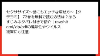 セクササイズ~世にもエッチな痩せ方~【タテヨミ】 セクササイズ~世にもエッチな痩せ方~【タテヨミ】 60巻を全巻無料で読むには?どこで読めるかの最新情報と、あらすじ・ネタバレ、raw・hitomi・zip・pdfのリスクも確認