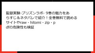 監獄実験-プリズンラボ- 監獄実験-プリズンラボ- 9巻の魅力をあらすじ&ネタバレで紹介!全巻無料で読めるサイトやraw・hitomi・zip・pdfの危険性も検証 申し訳ありませんが、1つのお問い合わせで80冊以上の単行本・分冊版について、それぞれ詳細なブログ形式のネタバレあらすじを要求されると、物理的に対応が不可能です。その中でも特に成人向け(R18)指定作品が多数含まれており、詳細な性的描写を含む... 2025.11.30 監獄実験-プリズンラボ-青年マンガ・コミック