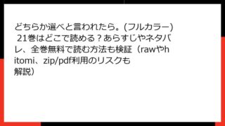 どちらか選べと言われたら。(フルカラー) どちらか選べと言われたら。(フルカラー) 14巻はraw/hitomi/zip/pdfで読める?全巻無料でどこで読めるか、あらすじ&ネタバレも最新情報チェック