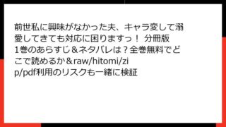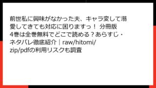 前世私に興味がなかった夫、キャラ変して溺愛してきても対応に困りますっ! 分冊版 前世私に興味がなかった夫、キャラ変して溺愛してきても対応に困りますっ! 分冊版 4巻は全巻無料でどこで読める?あらすじ・ネタバレ徹底紹介|raw/hitomi/zip/pdfの利用リスクも調査