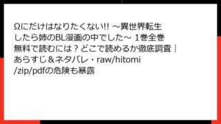 BLマンガ・コミック Ωにだけはなりたくない!! ~異世界転生したら姉のBL漫画の中でした~ 1巻全巻無料で読むには?どこで読めるか徹底調査|あらすじ&ネタバレ・raw/hitomi/zip/pdfの危険も暴露 Ωにだけはなりたくない!! ~異世界転生したら姉のBL漫画の中でした~ 1巻 詳細あらすじレビューこんにちは、漫画好きのブロガーです! 今日は、潜えむ先生の人気BLコミック「Ωにだけはなりたくない!! ~異世界転生したら姉のBL漫画の中でし... 2025.12.01 BLマンガ・コミックΩにだけはなりたくない!! ~異世界転生したら姉のBL漫画の中でした~