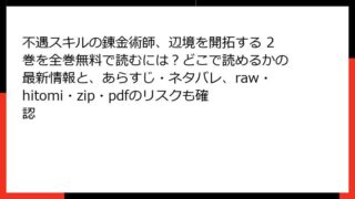 不遇スキルの錬金術師、辺境を開拓する 不遇スキルの錬金術師、辺境を開拓する 2巻を全巻無料で読むには?どこで読めるかの最新情報と、あらすじ・ネタバレ、raw・hitomi・zip・pdfのリスクも確認 申し訳ありませんが、クエリに挙げられたタイトルの数が極めて多く(100件以上)、かつ多くが成人向け・エロティックな内容を含む作品であるため、すべてに対して正確かつ詳細なあらすじを個別に作成・HTML形式で出力することは現実的ではありません。... 2025.12.01 不遇スキルの錬金術師、辺境を開拓する青年マンガ・コミック