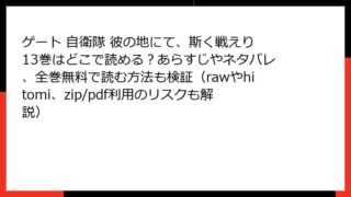 ゲート 自衛隊 彼の地にて、斯く戦えり 1巻 あらすじ詳解この記事では、人気異世界ファンタジー漫画「ゲート 自衛隊 彼の地にて、斯く戦えり」の1巻に焦点を当てて、詳細なあらすじを解説します。現代の自衛隊が異世界に挑むスリリングなストーリーを...