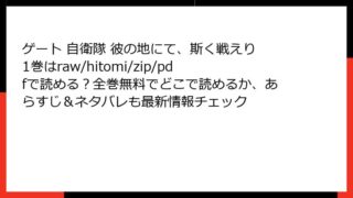 ゲート 自衛隊 彼の地にて、斯く戦えり ゲート 自衛隊 彼の地にて、斯く戦えり 1巻はraw/hitomi/zip/pdfで読める?全巻無料でどこで読めるか、あらすじ&ネタバレも最新情報チェック
