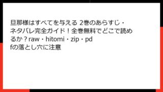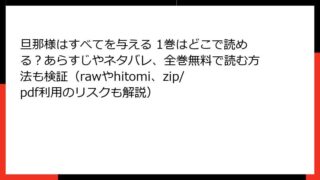少女マンガ・コミック 旦那様はすべてを与える 1巻はどこで読める?あらすじやネタバレ、全巻無料で読む方法も検証(rawやhitomi、zip/pdf利用のリスクも解説)