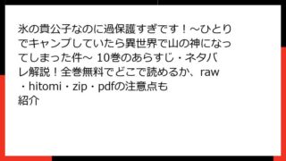 少女マンガ・コミック 氷の貴公子なのに過保護すぎです!~ひとりでキャンプしていたら異世界で山の神になってしまった件~ 4巻のあらすじ・ネタバレ解説!全巻無料でどこで読めるか、raw・hitomi・zip・pdfの注意点も紹介