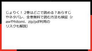 じょりく! じょりく! 2巻はどこで読める?あらすじやネタバレ、全巻無料で読む方法も検証(rawやhitomi、zip/pdf利用のリスクも解説)