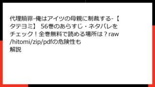 代理贖罪-俺はアイツの母親に制裁する-【タテヨミ】 代理贖罪-俺はアイツの母親に制裁する-【タテヨミ】 5巻はraw/hitomi/zip/pdfで読める?全巻無料でどこで読めるか、あらすじ&ネタバレも最新情報チェック