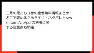 BLマンガ・コミック 三月の兎たち 1巻の全巻無料情報まとめ!どこで読める?あらすじ・ネタバレとraw/hitomi/zip/pdfの利用に関する注意点も網羅 三月の兎たち 1巻 詳細あらすじ|衝撃の学園サスペンスが幕を開ける「三月の兎たち」は、有馬けいによる注目のダーク学園ミステリー作品。1巻はわずか全5話(+番外編)という短さながら、読者を一気に引きずり込む圧倒的な情報量と伏線回収の予感で話題... 2025.12.05 BLマンガ・コミック三月の兎たち