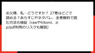 お父様、私…どうですか? お父様、私…どうですか? 27巻はどこで読める?あらすじやネタバレ、全巻無料で読む方法も検証(rawやhitomi、zip/pdf利用のリスクも解説)