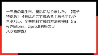 十三歳の誕生日、皇后になりました。【電子特別版】 十三歳の誕生日、皇后になりました。【電子特別版】 4巻はどこで読める?あらすじやネタバレ、全巻無料で読む方法も検証(rawやhitomi、zip/pdf利用のリスクも解説)
