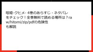 喰姫-クヒメ- 喰姫-クヒメ- 1巻の全巻無料情報まとめ!どこで読める?あらすじ・ネタバレとraw/hitomi/zip/pdfの利用に関する注意点も網羅