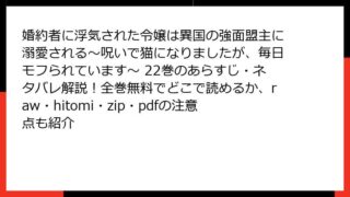女性マンガ・コミック 婚約者に浮気された令嬢は異国の強面盟主に溺愛される~呪いで猫になりましたが、毎日モフられています~ 26巻は全巻無料でどこで読める?あらすじ・ネタバレ徹底紹介|raw/hitomi/zip/pdfの利用リスクも調査