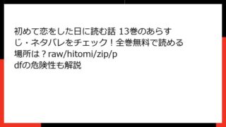 初めて恋をした日に読む話 初めて恋をした日に読む話 13巻のあらすじ・ネタバレをチェック!全巻無料で読める場所は?raw/hitomi/zip/pdfの危険性も解説