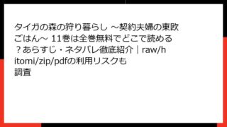 タイガの森の狩り暮らし ~契約夫婦の東欧ごはん~ タイガの森の狩り暮らし ~契約夫婦の東欧ごはん~ 11巻は全巻無料でどこで読める?あらすじ・ネタバレ徹底紹介|raw/hitomi/zip/pdfの利用リスクも調査