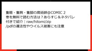 隻眼・隻腕・隻脚の魔術師@COMIC 隻眼・隻腕・隻脚の魔術師@COMIC 3巻を無料で読む方法は?あらすじ&ネタバレ付きで紹介|raw/hitomi/zip/pdfの違法性やウイルス被害にも注意