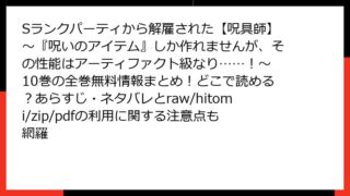 Sランクパーティから解雇された【呪具師】~『呪いのアイテム』しか作れませんが、その性能はアーティファクト級なり……!~ Sランクパーティから解雇された【呪具師】~『呪いのアイテム』しか作れませんが、その性能はアーティファクト級なり……!~ 10巻の全巻無料情報まとめ!どこで読める?あらすじ・ネタバレとraw/hitomi/zip/pdfの利用に関する注意点も網羅