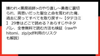 嫌われのやり直し~勇者に裏切られ、両思いだった聖女と命を奪われた俺、過去に戻ってすべてを取り戻す~【タテヨミ】 嫌われ<黒魔術師>のやり直し~勇者に裏切られ、両思いだった聖女と命を奪われた俺、過去に戻ってすべてを取り戻す~【タテヨミ】 29巻はどこで読める?あらすじやネタバレ、全巻無料で読む方法も検証(rawやhitomi、zip/pdf利用のリスクも解説)