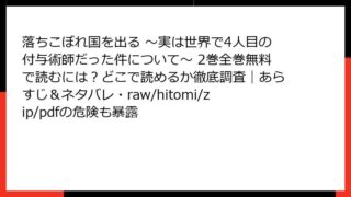 少年マンガ・コミック 落ちこぼれ国を出る ~実は世界で4人目の付与術師だった件について~ 2巻全巻無料で読むには?どこで読めるか徹底調査|あらすじ&ネタバレ・raw/hitomi/zip/pdfの危険も暴露 落ちこぼれ国を出る ~実は世界で4人目の付与術師だった件について~ 2巻 詳細あらすじ前巻で国外追放の危機を乗り越え、異世界転生者のジンクが新たな舞台であるクオール王国に足を踏み入れる第2巻。落ちこぼれ貴族から、世界で4人目という希少な「付... 2025.12.08 少年マンガ・コミック落ちこぼれ国を出る ~実は世界で4人目の付与術師だった件について~