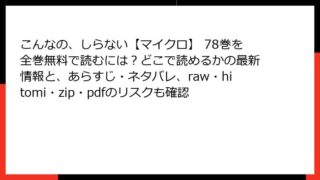 こんなの、しらない【マイクロ】 こんなの、しらない【マイクロ】 78巻を全巻無料で読むには?どこで読めるかの最新情報と、あらすじ・ネタバレ、raw・hitomi・zip・pdfのリスクも確認