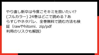 やり直し新卒は今度こそキミを救いたい!?(フルカラー) やり直し新卒は今度こそキミを救いたい!?(フルカラー) 24巻はどこで読める?あらすじやネタバレ、全巻無料で読む方法も検証(rawやhitomi、zip/pdf利用のリスクも解説)