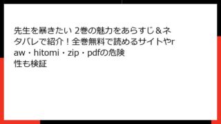 BLマンガ・コミック 先生を暴きたい 2巻の魅力をあらすじ&ネタバレで紹介!全巻無料で読めるサイトやraw・hitomi・zip・pdfの危険性も検証 『先生を暴きたい』2巻 詳細あらすじレビュー:嫉妬と愛の深まりが織りなす職員室BLの甘辛展開皆さん、こんにちは! BL漫画好きのブロガー、です。今回は、うすいしっぽ先生の人気作『先生を暴きたい』2巻のあらすじを、ネタバレ満載で詳しく掘り下げ... 2025.12.09 BLマンガ・コミック先生を暴きたい