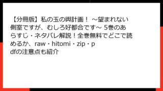 【分冊版】私の玉の輿計画! ~望まれない側室ですが、むしろ好都合です~ 6巻のあらすじ詳解この記事では、人気の転生ファンタジーコミック「私の玉の輿計画! ~望まれない側室ですが、むしろ好都合です~」の分冊版第6巻について、詳細なあらすじを掘...
